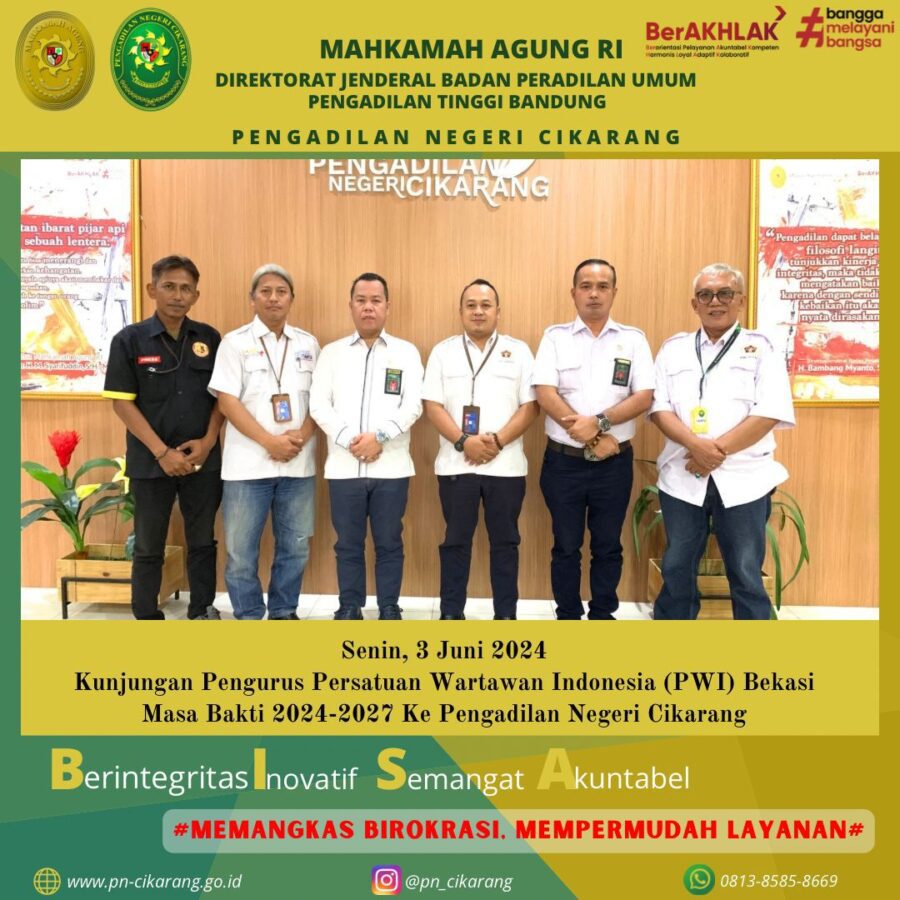 Menurutnya, PN Cikarang bersedia untuk bersinergi, membangun komunikasi aktif dengan PWI Bekasi Raya bersama-sama memberikan informasi yang mengedukasi terhadap masyarakat.