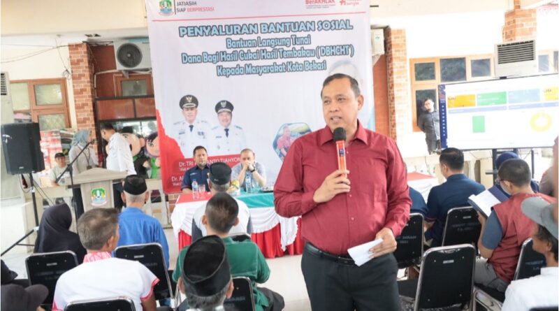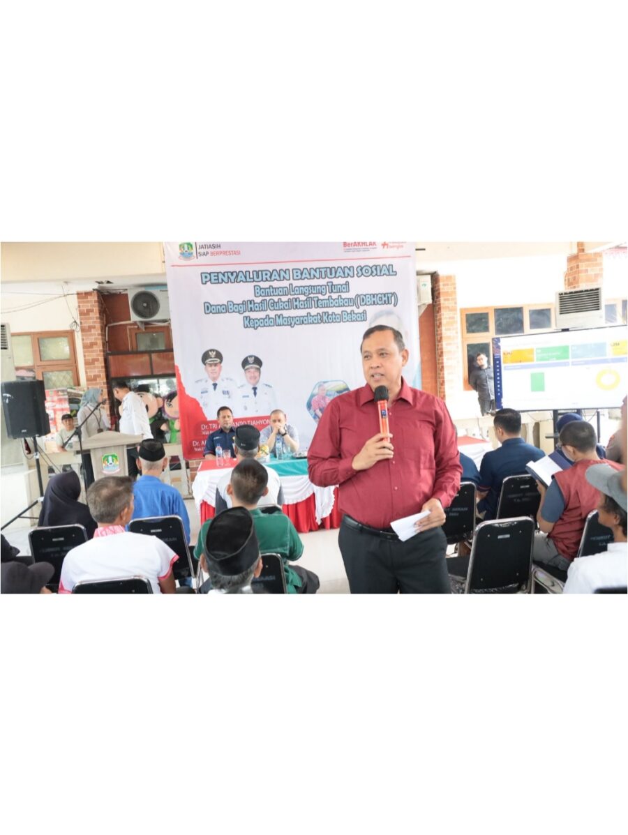 Wali Kota Bekasi, Tri Adhianto, hadir langsung untuk menyerahkan secara simbolis bantuan sebesar Rp 250.000 kepada masing-masing Keluarga Penerima Manfaat (KPM). Dana tersebut bersumber dari DBHCHT yang diterima Pemkot Bekasi dan disalurkan melalui kerja sama dengan PT. Pos Indonesia.