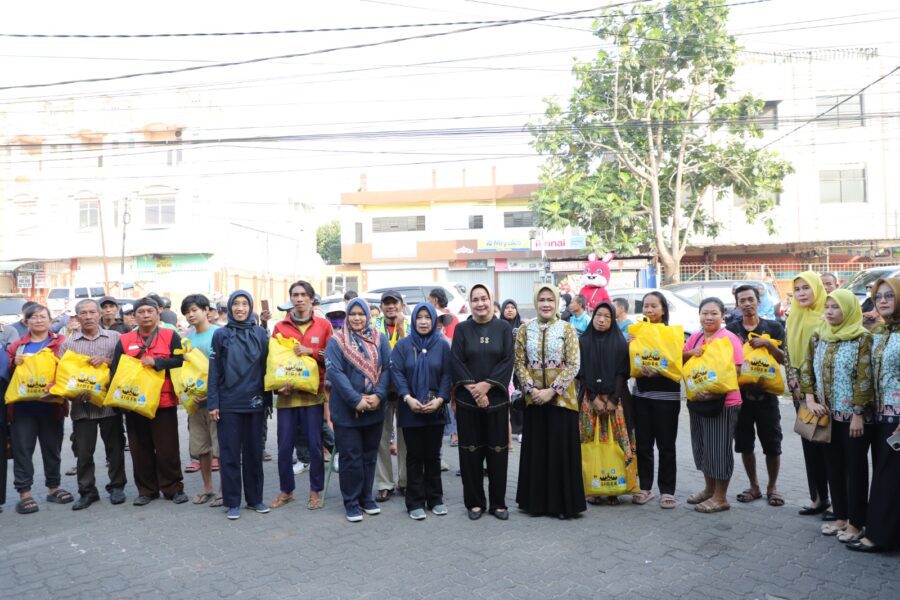 REDAKSI31.COM – Bandar Lampung, Ketua Tim Penggerak PKK Provinsi Lampung Ibu Riana Sari Arinal bersama jajaran Dinas Kelautan dan Perikanan serta Dinas Perumahan Kawasan Permukiman dan Cipta Karya memberikan Bantuan Sosial kepada karyawan toko, pedagang dan pemulung di sekitar kediaman Gubernur Lampung Jum’at (7/6/2024).