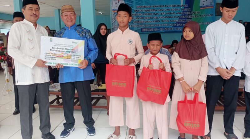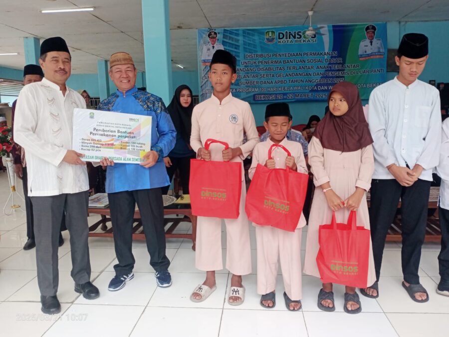 Jumat, 21 Maret 2025. Asisten Perekonomian dan Pembangunan Setda Kota Bekasi (Asda II) H Inayatullah mewakili Wali Kota Bekasi Dr Tri Adhianto dalam pemberian simbolis bantuan permakanan bagi 15 yayasan anak terlantar, Lansia terlantar dan para disabilitas bertempat di Yayasan Galuh Kelurahan Sepanjang Jaya Kecamatan Rawalumbu, Jumat, (21/3/2025).