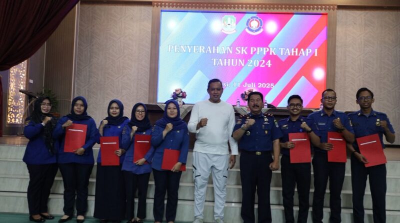REDAKSI31.COM – Kota Bekasi , Wali Kota Bekasi, Dr. Tri Adhianto, menyerahkan secara langsung Surat Keputusan (SK) kepada Pegawai Pemerintah dengan Perjanjian Kerja (PPPK) di lingkungan Dinas Pemadam Kebakaran dan Penyelamatan Kota Bekasi. Acara berlangsung di Balai Patriot, Jumat (11/7/2025), dan dihadiri oleh jajaran pejabat struktural, perwakilan ASN, serta para personel Damkar yang menerima SK.